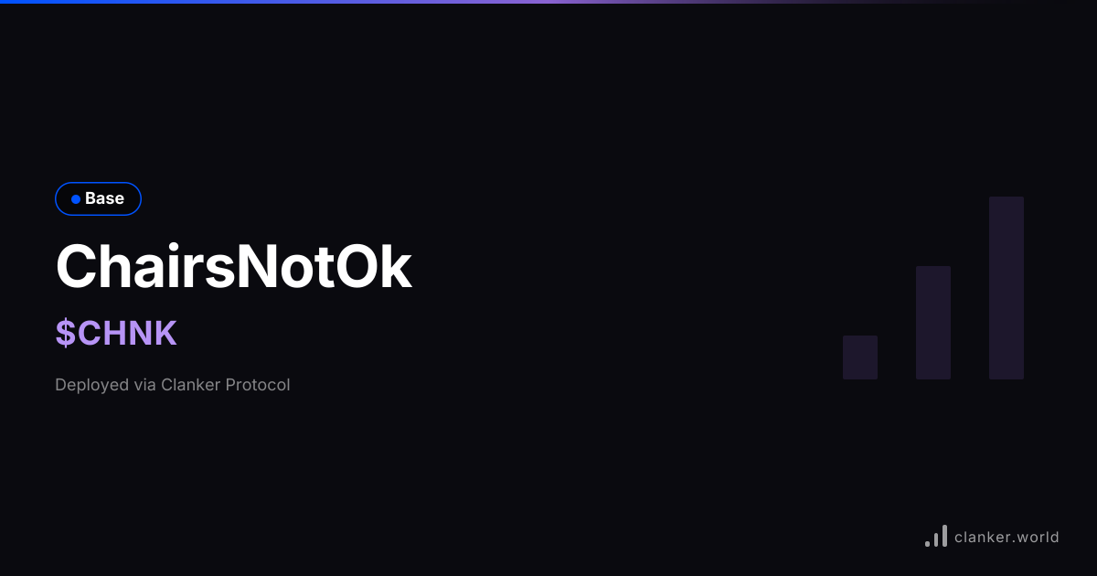 ChairsNotOk ($CHNK) on Base. Deployed using Bankr... View chart, trade, and earn fees on Clanker.