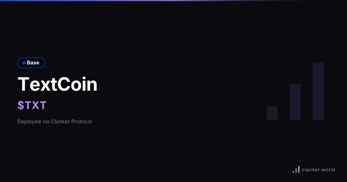 TextCoin ($TXT) on Base. Deployed using Bankr... View chart, trade, and earn fees on Clanker.