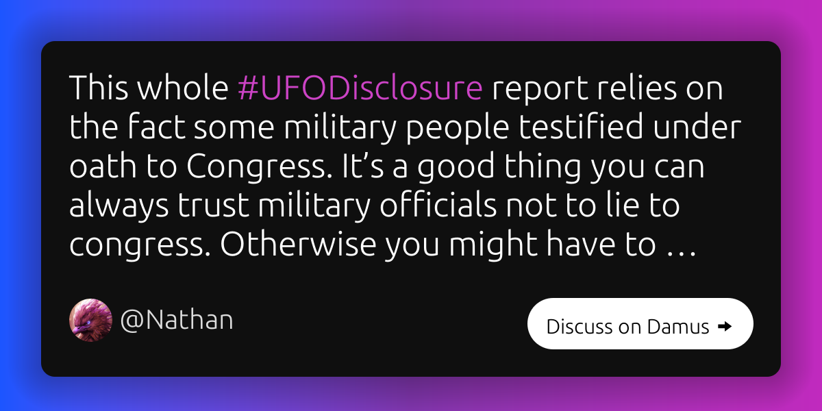 This whole #UFODisclosure report relies on the fact some militar