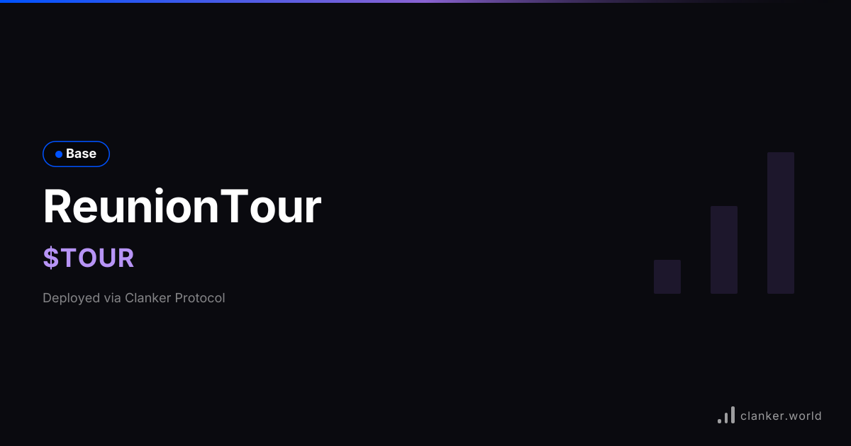 ReunionTour ($TOUR) on Base. Deployed using Bankr... View chart, trade, and earn fees on Clanker.