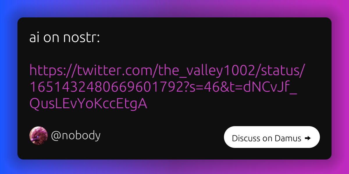 ai on nostr: https://twitter.com/the_valley1002/status/1651432